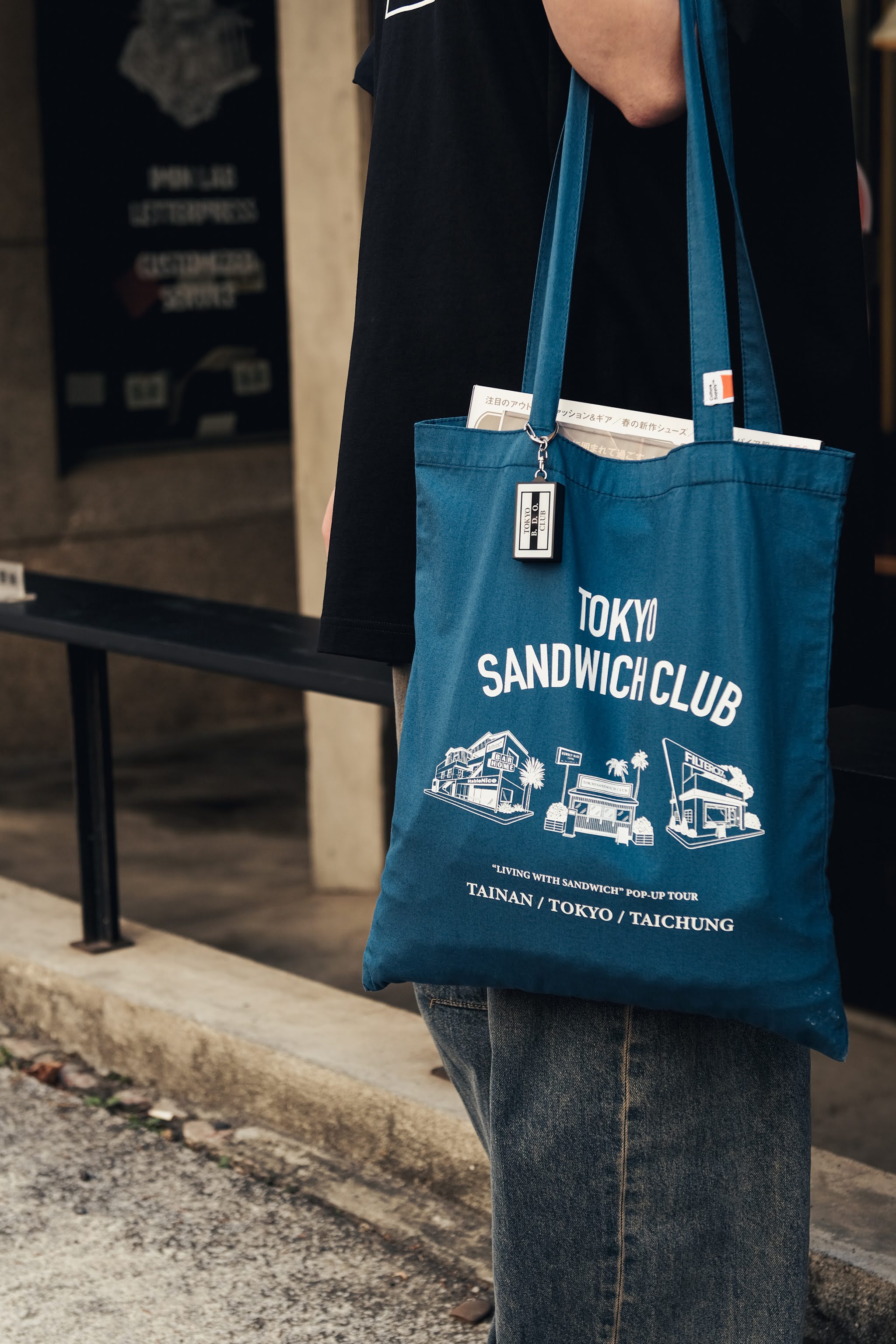 以Tokyo Sandwich Club 品牌經典圖像作為主視覺,採用經典托特包版型與手感舒適的棉質面料,適宜的背帶長度設定,可肩背、可手提,於日常便攜裝載各式書籍雜誌、黑膠唱片等雜物,讓生活兼具質感與便利。