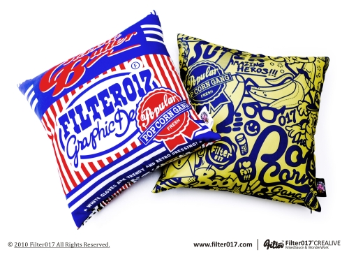 Graphic pillow of 15x15 inches cm realized by the collective of graphic designers from Taïwan : FILTER017 (Graphic designers / Graffiti Artists / Designers Toys)