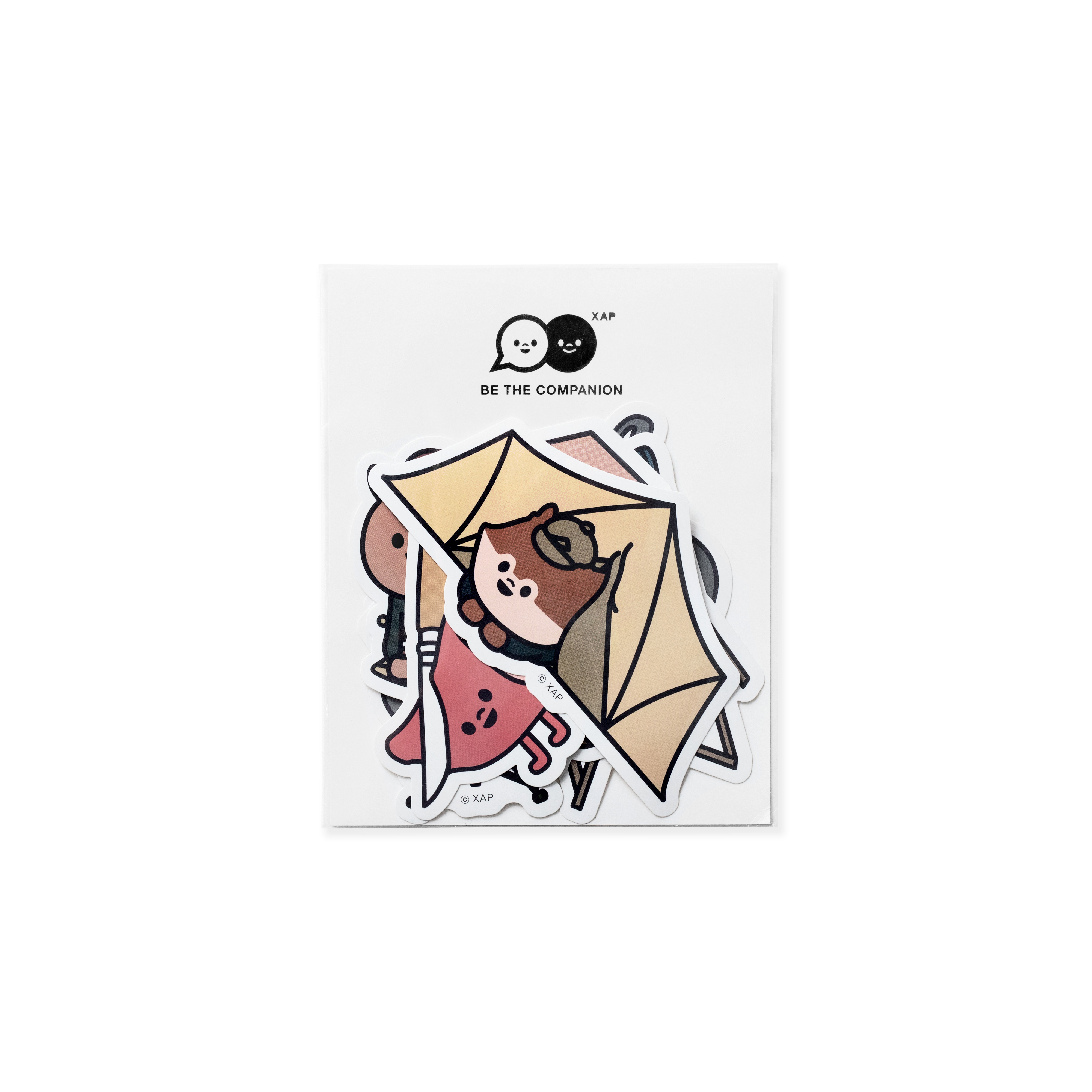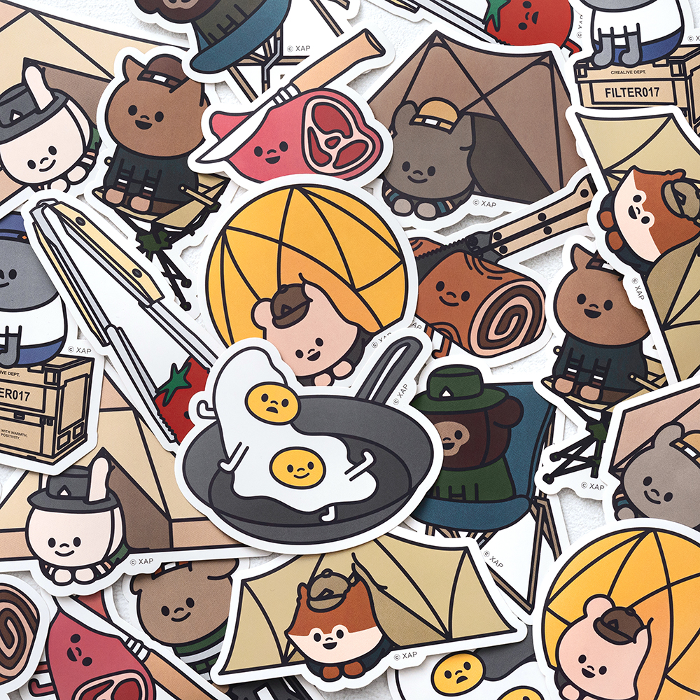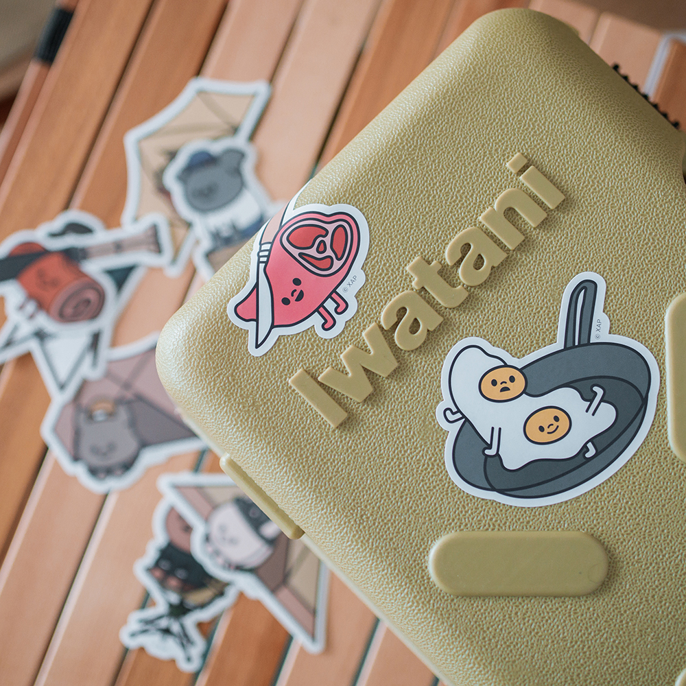 此次聯名貼紙包分成 A、B 兩款,皆以各種經典露營道具為發想,透過角色圖像詮釋 XAP 專屬的可愛露營風格。