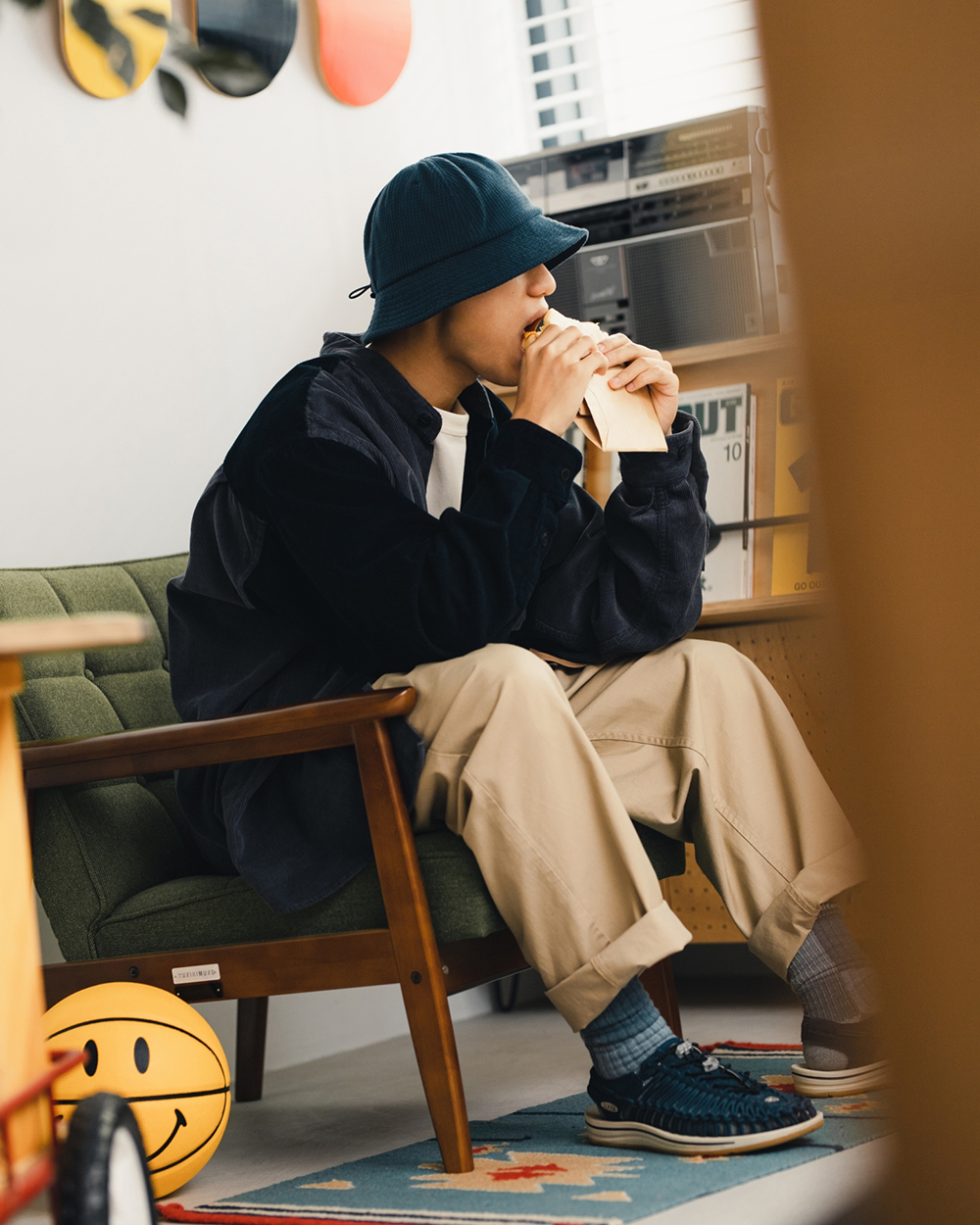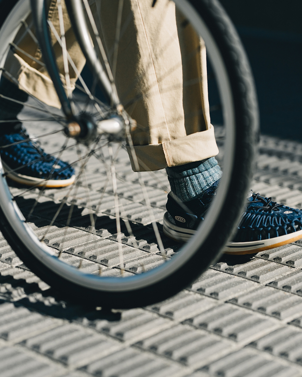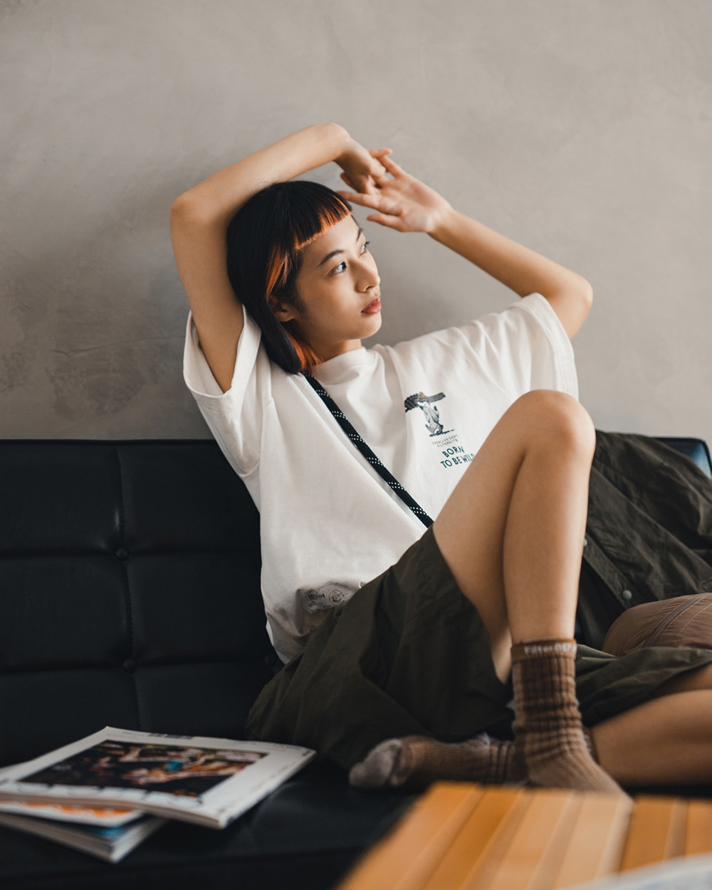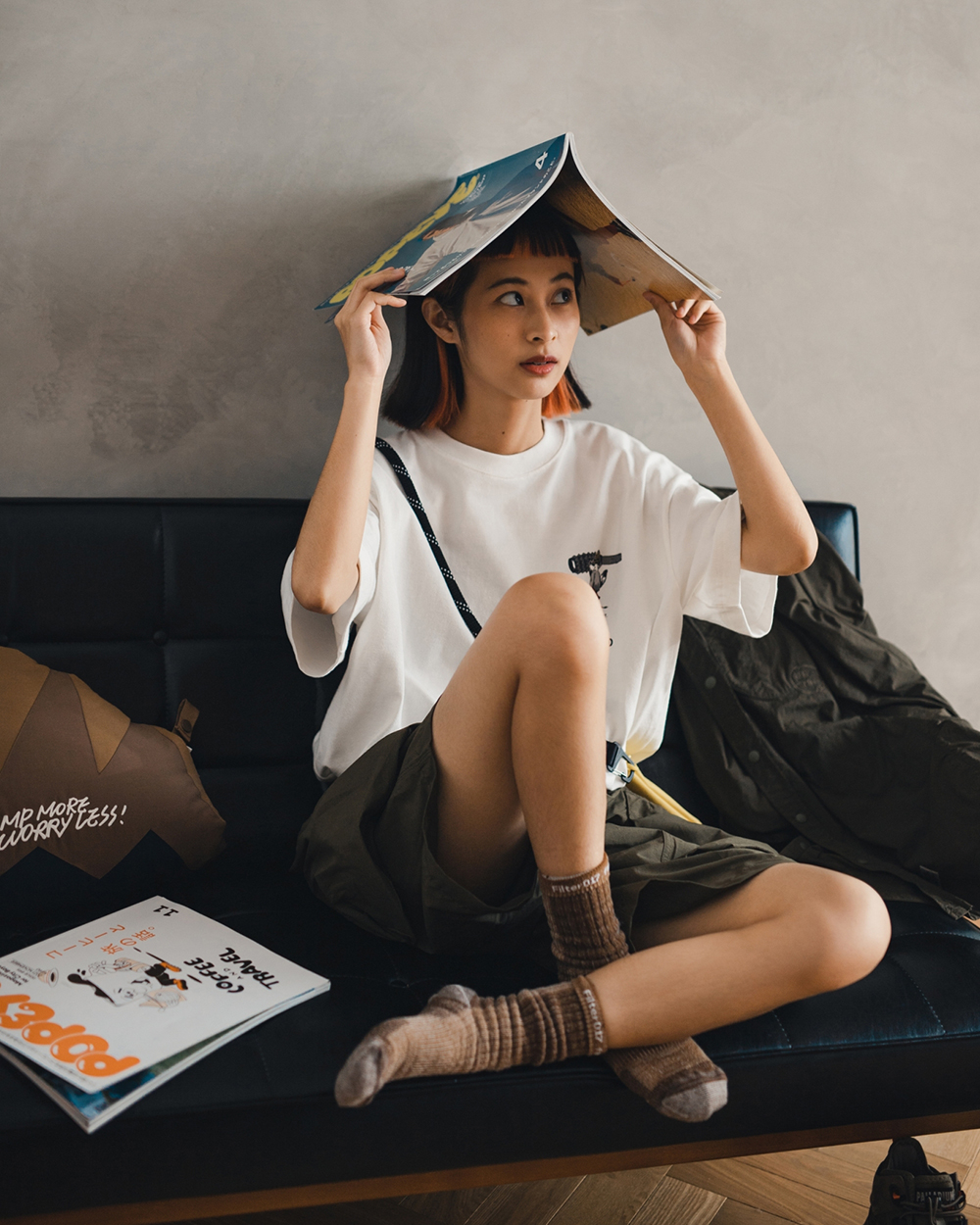 視覺設計呈現靈感源於洗鍊舊化的丹寧面料,陳藉由羊毛胚紗色及織品結構,營造出水洗落色的氛圍,並於襪身加入色塊拼接,使襪身表面富有古布拼接的輪廓與視覺,充分詮釋演繹出Filter017® 於復古流行與戶外休閒的品牌軸向。